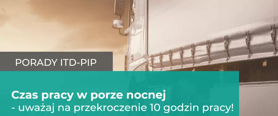Ważną informacją jest, że przepis ten dotyczy zarówno pracowników zatrudnionych na umowie o pracę jak i umowie zleceniu czy na własnej działalności. Do limitu 10 godzin zalicza się tylko zdarzenia jazdy i innej pracy kierowcy, a przerwy w pracy (np. przerwa śniadaniowa) i dyspozycja nie są czasem pracy i nie mogą powodować naruszenia przepisów. Dodatkowo pamiętajmy, że definicja 8-godzinnej pory nocnej z Kodeksu Pracy obowiązuje nadal do naliczania wynagrodzenia – mówi Mariusz Hendzel, ekspert Kancelarii Transportowej ITD-PIP. Więcej o porze nocnej, dobie i rozliczaniu czasu pracy kierowców można dowiedzieć się z poradnika dostępnego tutaj.