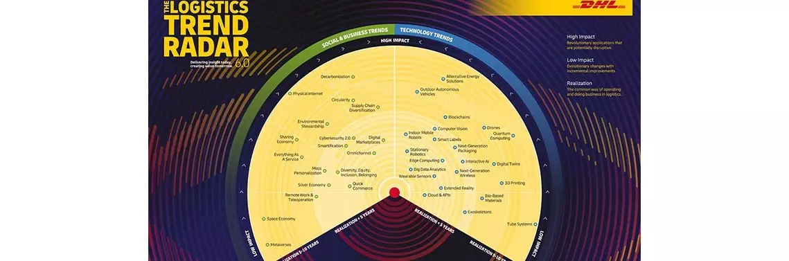 DHL Logistics Trend Radar to publikowany co dwa lata raport, który omawia najistotniejsze dla branży logistycznej tendencje społeczne, ekonomiczne i technologiczne. Publikacja to wynik szczegółowej analizy makro- i mikrotendencji oraz danych pochodzących z szeregu rozmów z klientami i z szeroką siecią partnerów, w tym instytutów badawczych, firm technologicznych i startupów. W szóstej edycji raportu DHL zawarto omówienie 40 tendencji, które z punktu widzenia branży będą kształtowały kierunek rozwoju firm, społeczeństw i technologii.