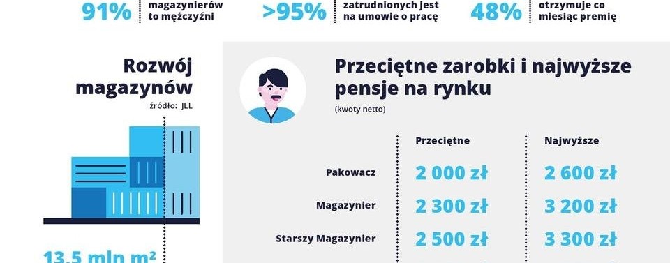 Według firmy JLL w ciągu pięciu lat liczba magazynów w Polsce wzrosła prawie dwukrotnie - pod koniec 2017 roku w Polsce zajmowały one łącznie około 13,5 mln metrów kwadratowych. Jak przyznają eksperci ds. HR, praca w branży logistycznej bywa ciężka fizycznie, a istotną rolę odgrywają w niej względy bezpieczeństwa. Jednocześnie fach magazyniera daje ciekawe możliwości rozwoju zarówno osobom szukającym pierwszej pracy, jak i doświadczonym fachowcom, którzy chcą zdobyć praktyczną wiedzę o funkcjonowaniu procesów magazynowych.