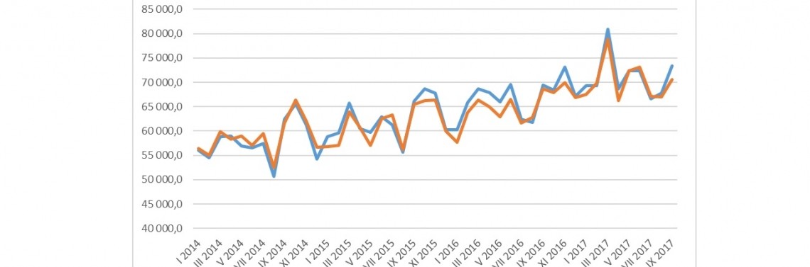 Według GUS, po dziewięciu miesiącach wartość eksportu wyniosła 640,6 mld zł, a import sięgnął 632,6 mld zł, co oznacza nadwyżkę eksportu w wysokości nieco ponad 8 ml...