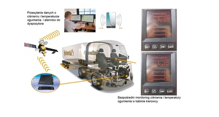W przypadku zbyt niskiego ciśnienia lub przekroczenia wysokiej temperatury opony, TPMS_TELEMATICS zdalnie alarmuje zarządzających transportem o zaistniałym zdarzeniu.