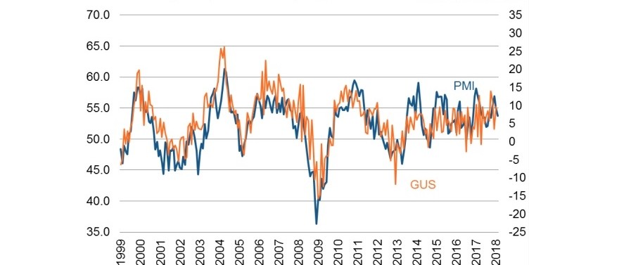 Wyniki badań PMI® z lutego zasygnalizowały dalszą solidną poprawę warunków gospodarczych polskiego sektora przemysłowego, pomimo nieznacznego spadku tempa od początku roku 2018. Liczba nowych zamówień wzrosła, lecz w najsłabszym tempie od sześciu miesięcy, prowadząc do łagodniejszego wzrostu produkcji, aktywności zakupowej i zatrudnienia. Mimo to, tempo wzrostu dla wszystkich czterech zmiennych utrzymało się p...